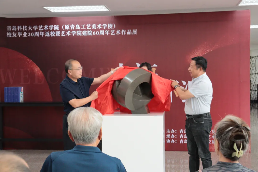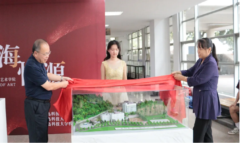 员工朱林在校庆70周年时,曾向公司捐赠雕塑作品《艺术时代》,在此次建院60周年之际,再次为公司捐赠雕塑作品《甲子》,由丁林和朱林共同为作品揭幕并颁发收藏证书。员工袁翠华,在国庆70周年之际代表山东省制作了黄岛地下油库模型,此次为公司捐赠“原青岛工艺美校校址模型”,由丁林和袁翠华共同为作品揭幕并颁发收藏证书。在本次院庆活动中,还有葛正礼、刘培习、李建波、韩庆强、魏仁博、张晗东等一百多位员工为院庆活动捐款捐物。