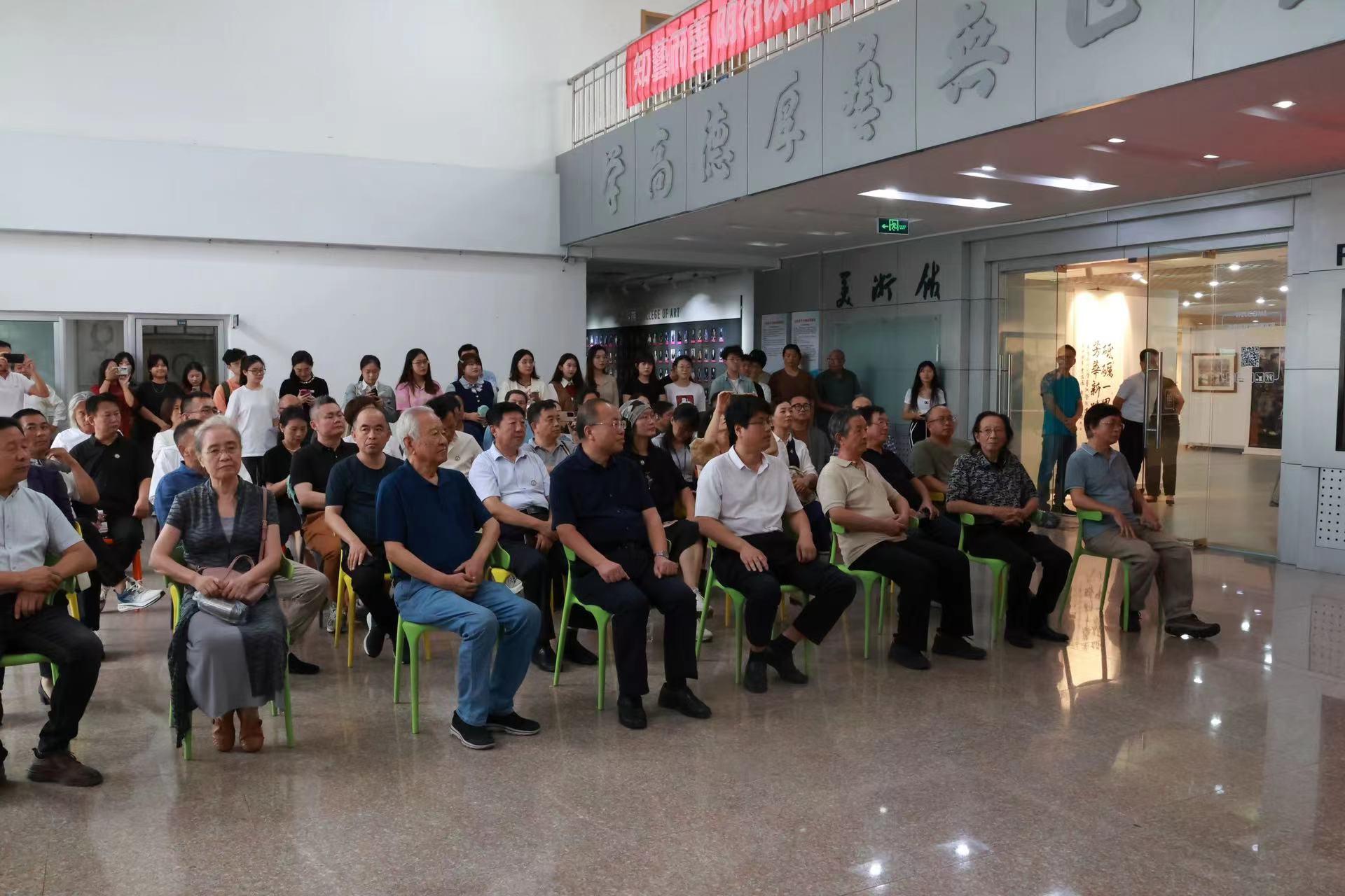 最后,现场嘉宾领导移步十大正规买足球网站美术馆,参观建院60周年艺术作品展,并交流学习。参观过程中,领导及嘉宾认真欣赏每一幅精湛的作品,深刻品味作品背后的意义,感悟艺术家们的笃定之心和奋发之志。