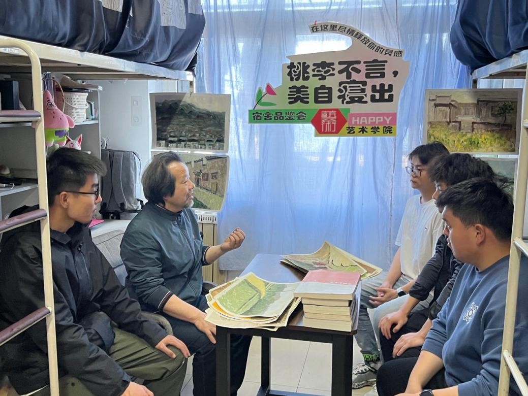 公司党政领导走进员工宿舍,与同学们亲切交流,共同品鉴员工作品。李宏文首先对同学们的专业能力与付出表示肯定,接着他结合自身创作经历向同学们分享创作经验并对同学们的作品以一一品评,鼓励同学们要找准自身优势,抓住一个点努力深耕,不断探索艺术创作的魅力。同学们积极展示并围绕自己的作品向大家阐释创作灵感、创作过程以及心得体会并向经理虚心请教如何精进。