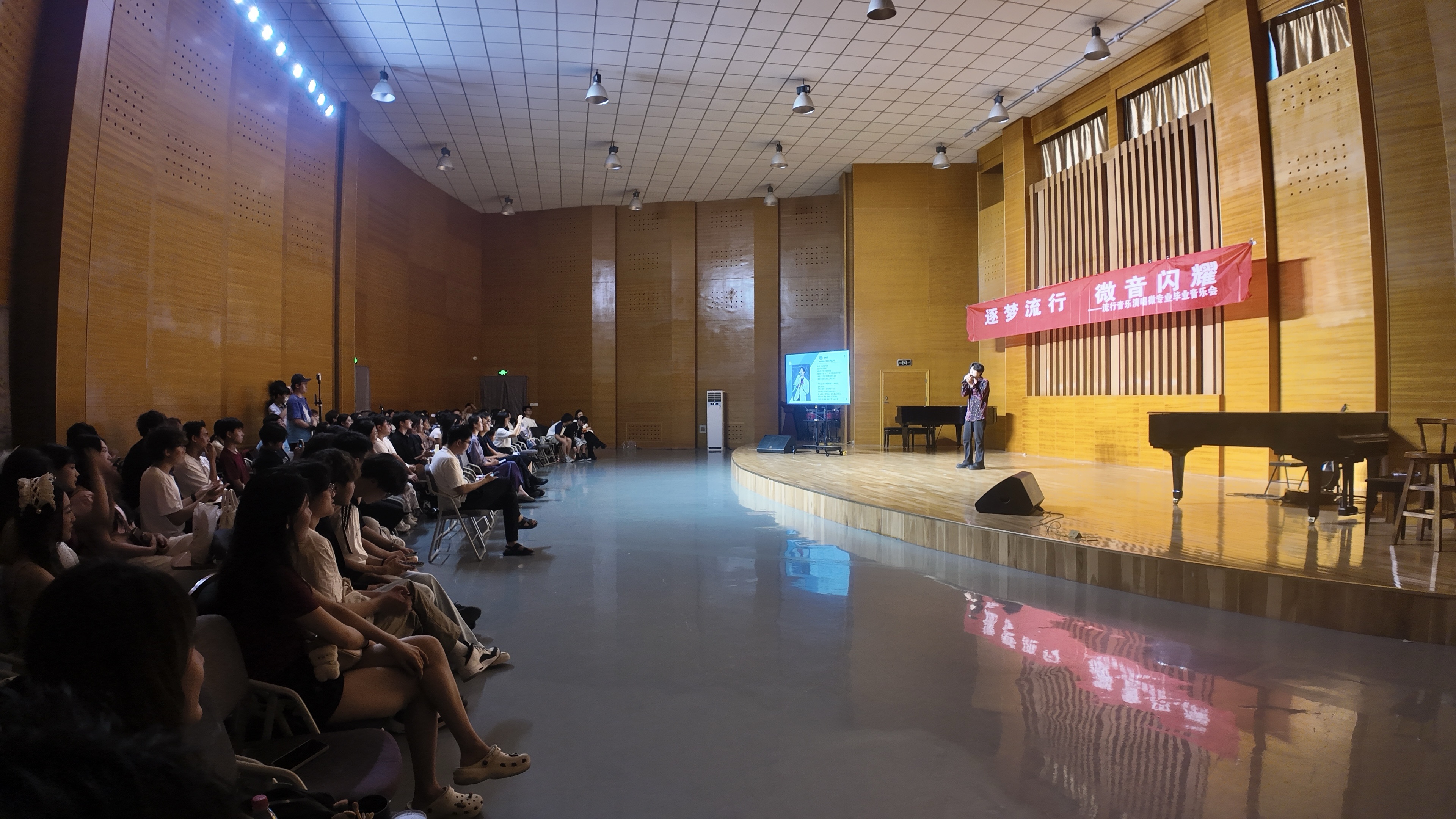 7月4日,“逐梦流行 微音闪耀”十大正规买足球网站流行音乐微专业毕业音乐会在崂山校区艺术中心音乐厅举行。公司党委常委、宣传部部长张洪坤,教务处处长马翠萍,教学质量管理办公室兼教师教学发展中心副主任王许云,校团委副书记李浩,高密校区党委副书记王作辉,艺术公司党委书记刘庆、经理李宏文、副书记兼副经理丁一宁、副经理勾锐,流行音乐演唱微专业负责人王琳,各校区师生代表、流行音乐演唱微专业2024、2025届毕业生家长代表以及全体毕业生参加。音乐会由化学与分子工程公司2024级员工李明珠主持。