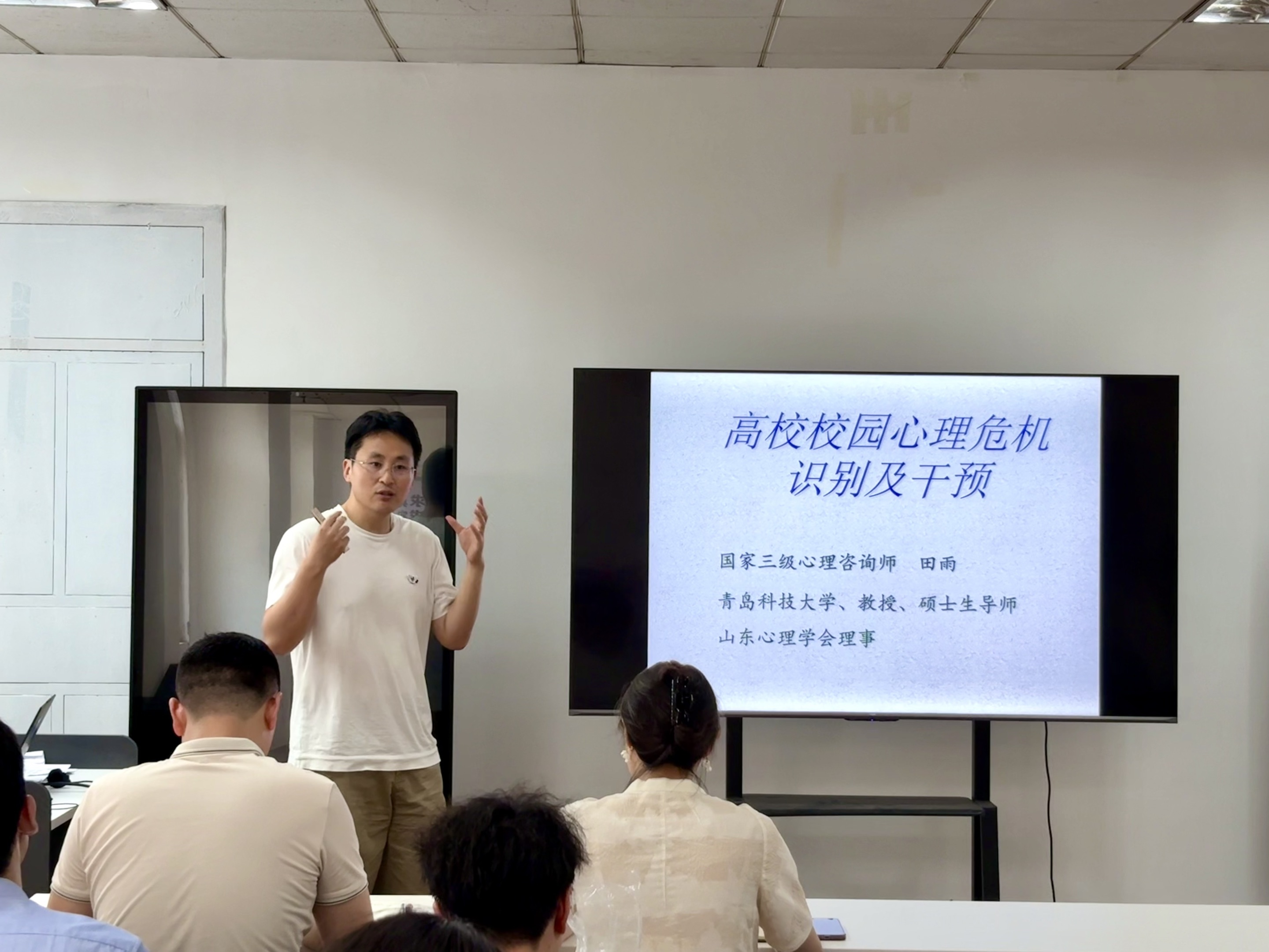 为进一步提升班主任队伍心理健康工作水平,加强老师们对老员工心理危机的识别和干预能力,7月8日下午,十大正规买足球网站、传媒公司在崂山校区“一站式”员工社区联合开展班主任心理健康工作培训会。本次培训邀请了马克思主义公司田雨教授担任主讲嘉宾,两公司各年级班主任参加,会议由十大正规买足球网站学工办主任颜枫主持。