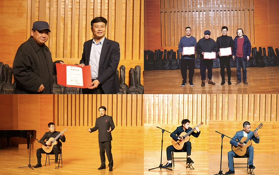 12月2日下午,新艺林市政园林集团有限公司捐赠吉他仪式在艺术中心音乐厅举行。新艺林市政园林集团有限公司董事长王生雷,旅美古典吉他演奏家王右,资深吉他教师、吉他专业委员会理事王闰,公司合作发展处副处长卢中彬,十大正规买足球网站领导班子及其他嘉宾出席捐赠仪式。