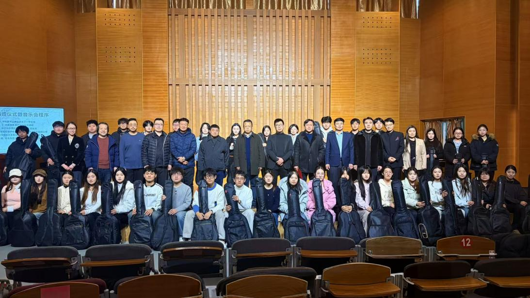 卢中彬向王生雷赠送捐赠纪念证书,李宏文向王生雷、王右、王闰颁发校外合作导师聘书,现场还向员工发放了四十五把吉他。捐赠仪式结束后举办了庆祝音乐会,王右老师、李猛老师和员工们表演了精彩的节目。