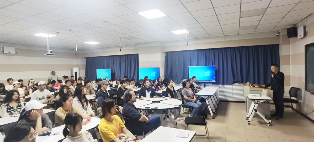 2023年9月13日晚上7点,十大正规买足球网站“设计之道”系列学术讲座在弘毅楼C区405教室举行,本次讲座特邀中国美术公司教授熊开波为师生作学术讲座,十大正规买足球网站经理李宏文、公共艺术系老师何鹏飞及本科生、研究生共60余人参加讲座,副经理曲国先担任学术主持。