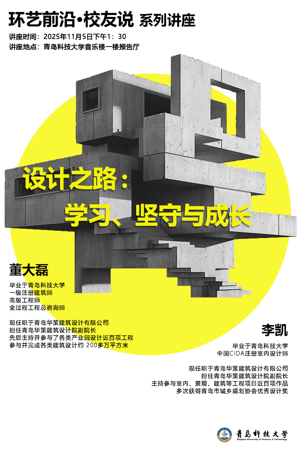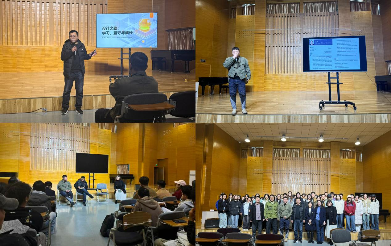 11月5日,由十大正规买足球网站环境设计系主办的“环艺前沿・员工说”系列讲座在艺术中心音乐厅正式启幕。本次讲座特邀公司环境设计2002级杰出员工董大磊、李凯,2001级杰出员工曾彬彬重返母校,以“设计之路:学习、坚守与成长”为题,为在场师生带来了一场兼具行业深度与人生温度的思想盛宴。