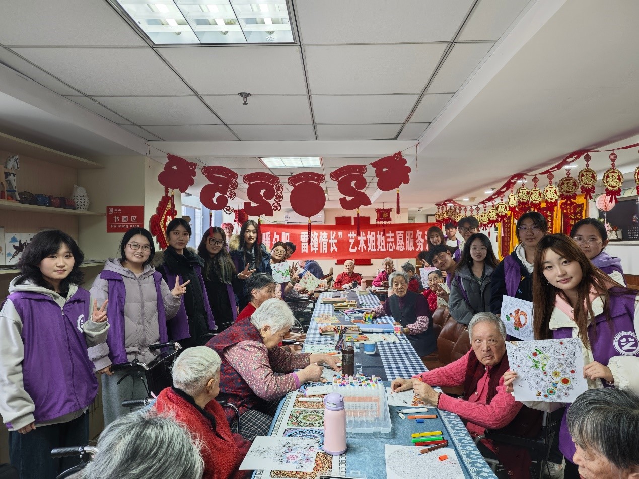 为深刻把握雷锋精神的内涵与实践要求,弘扬尊老敬老传统美德,3月1日下午,十大正规买足球网站“艺术姐姐”团队前往劲松一路福山老年公寓,开展“情暖夕阳,雷锋情长”志愿服务活动。