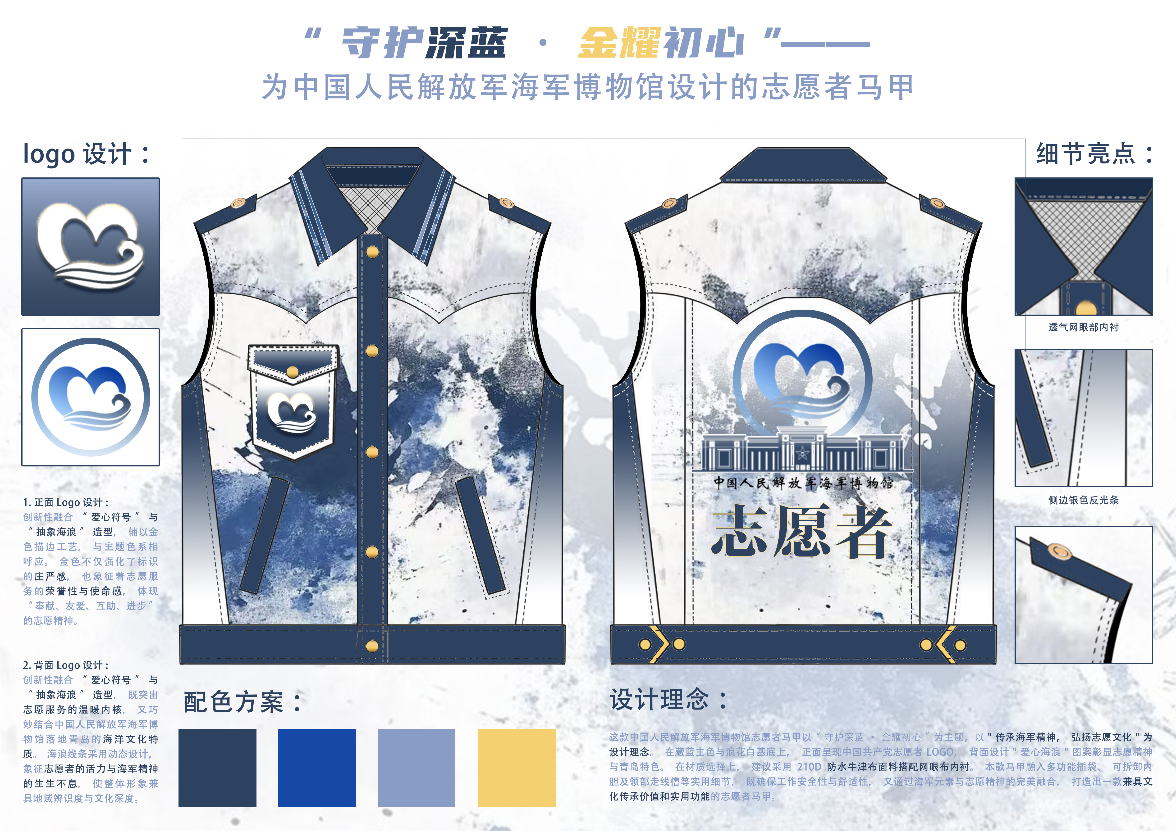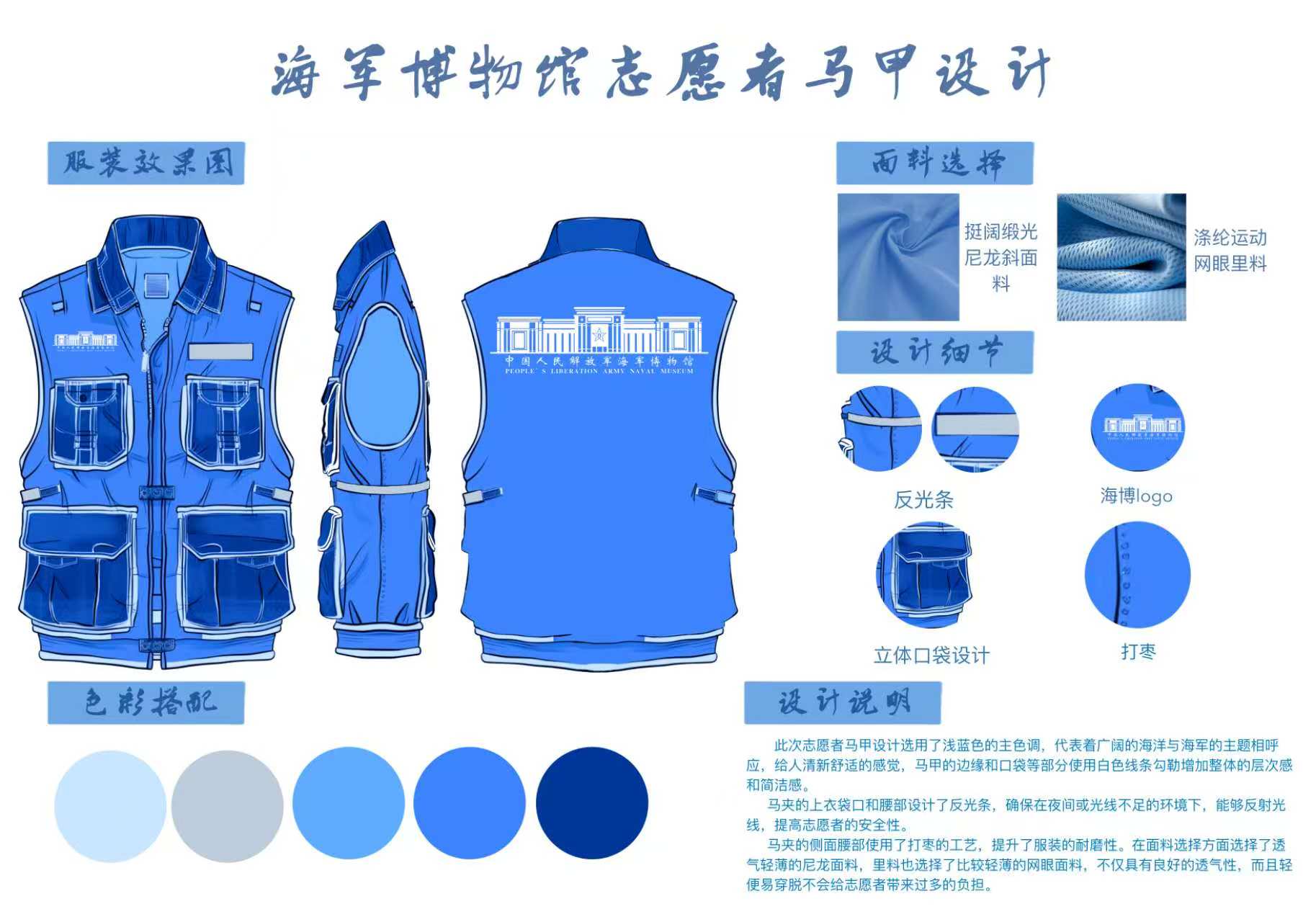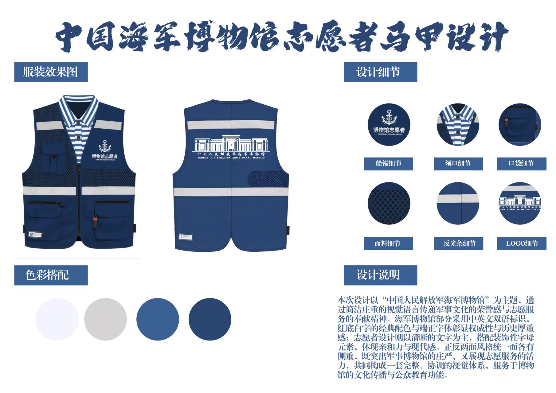 为庆祝人民海军成立76周年,弘扬和传承伟大抗战精神,十大正规买足球网站联合中国人民解放军海军博物馆成功举办“创‘艺’无限,海魂闪耀”海军博物馆志愿者马甲优化设计主题征集活动。