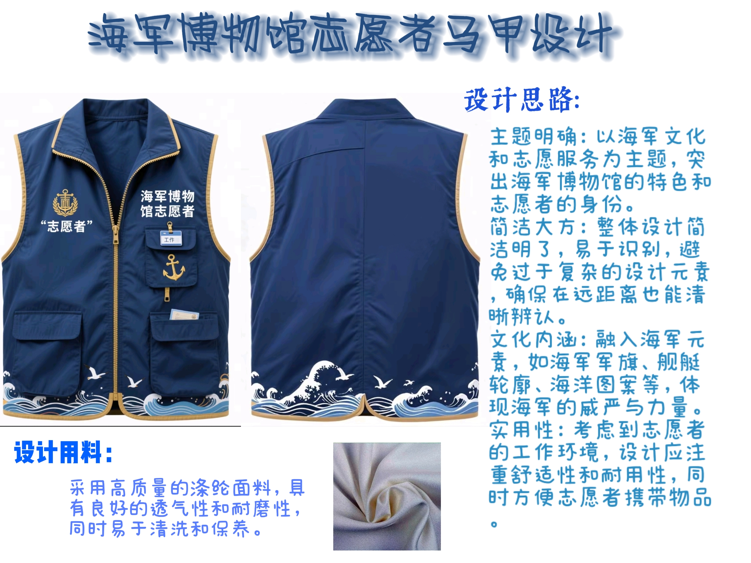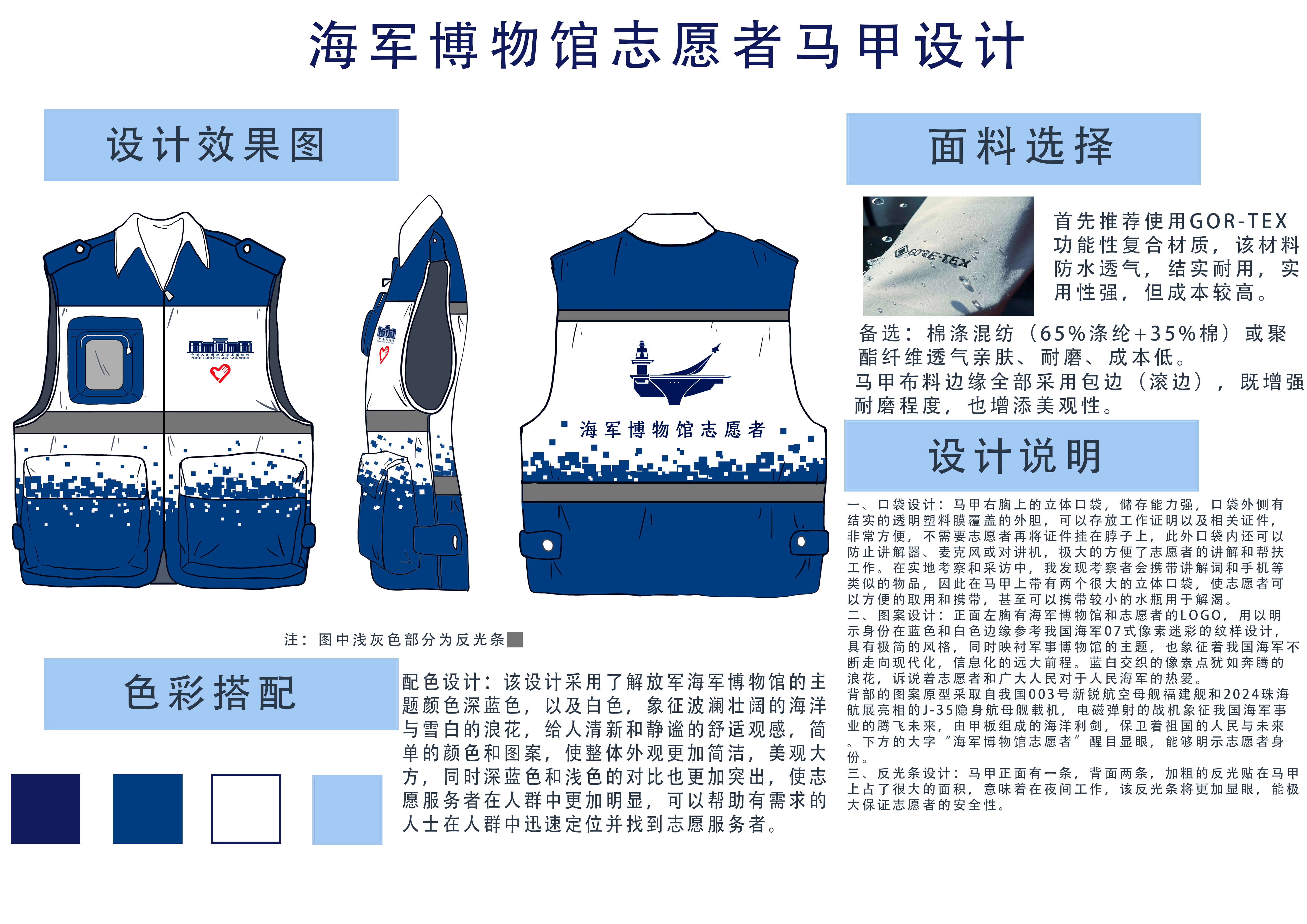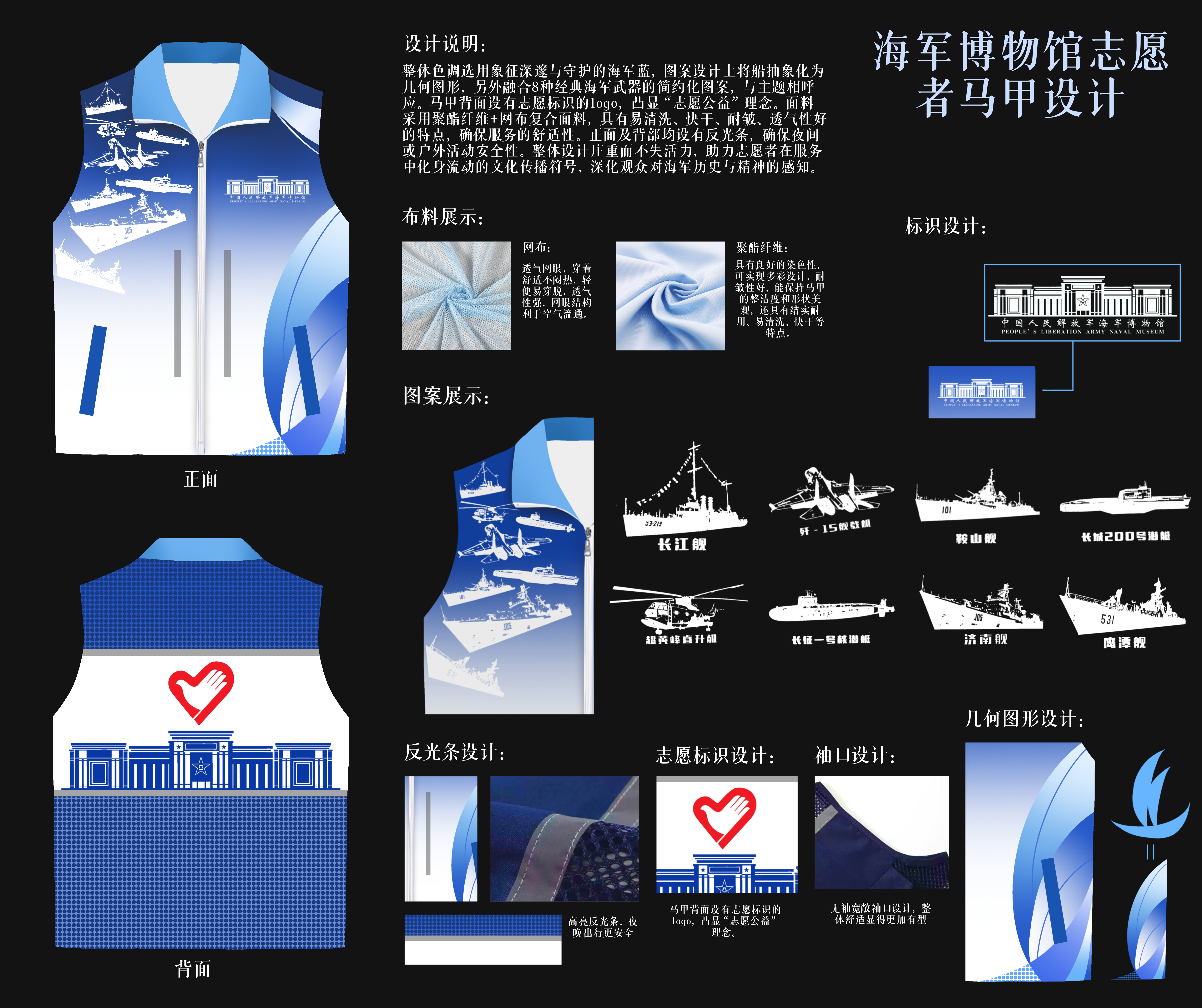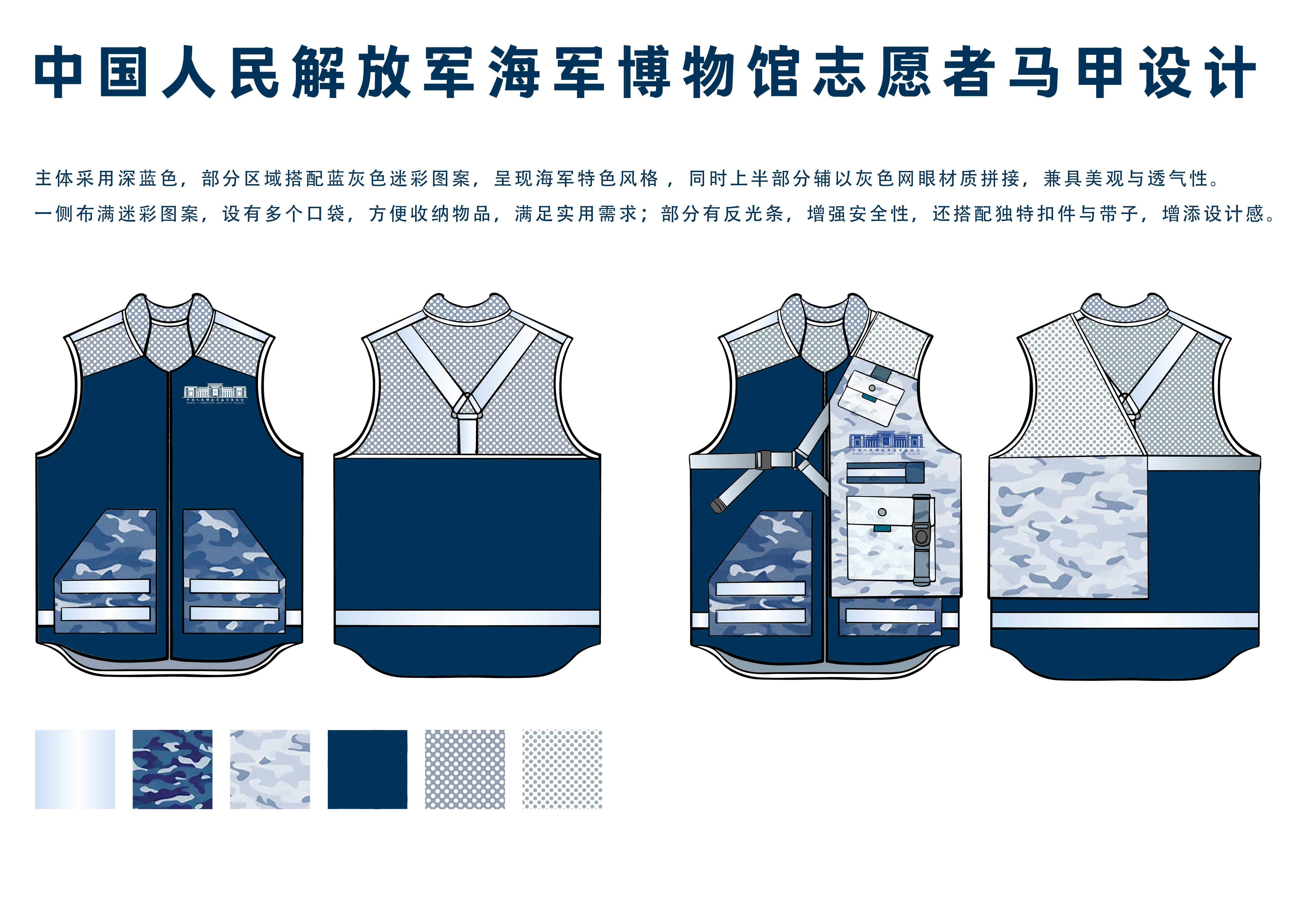 为庆祝人民海军成立76周年,弘扬和传承伟大抗战精神,十大正规买足球网站联合中国人民解放军海军博物馆成功举办“创‘艺’无限,海魂闪耀”海军博物馆志愿者马甲优化设计主题征集活动。