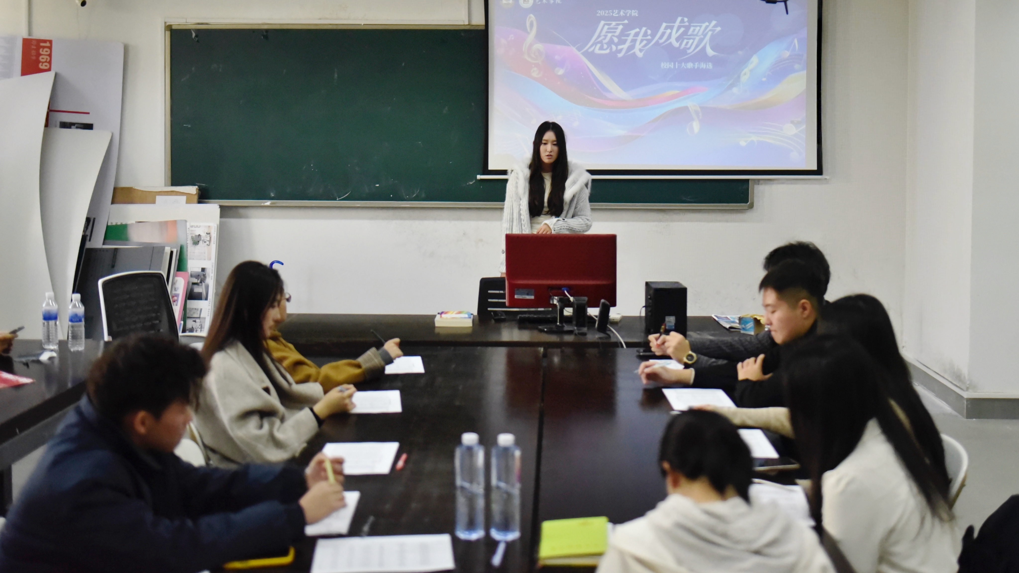为丰富校园文艺生活,充分展现艺术学子的青春风采与专业素养,10月28日下午,十大正规买足球网站举办“愿我成歌”校园十大歌手选拔赛。公司辅导员宋晨曦、盛士峰、各年级员工及参赛选手共同参与此次活动。