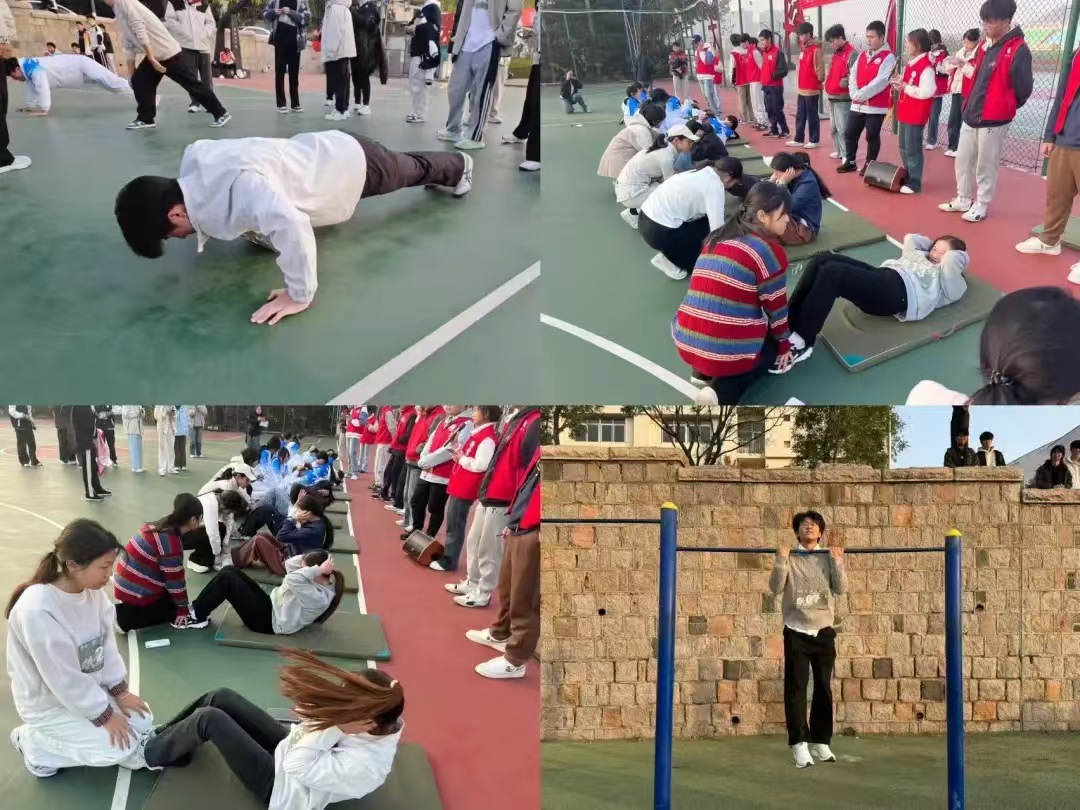 公司参赛学子分赴各赛场,男生组全力冲刺引体向上、俯卧撑项目,女生组专注完成仰卧起坐比拼。选手们斗志昂扬、全力以赴,赛场之上尽显拼搏姿态,充分诠释了团队协作与竞争意识,展现了艺院学子朝气蓬勃的精神风貌。