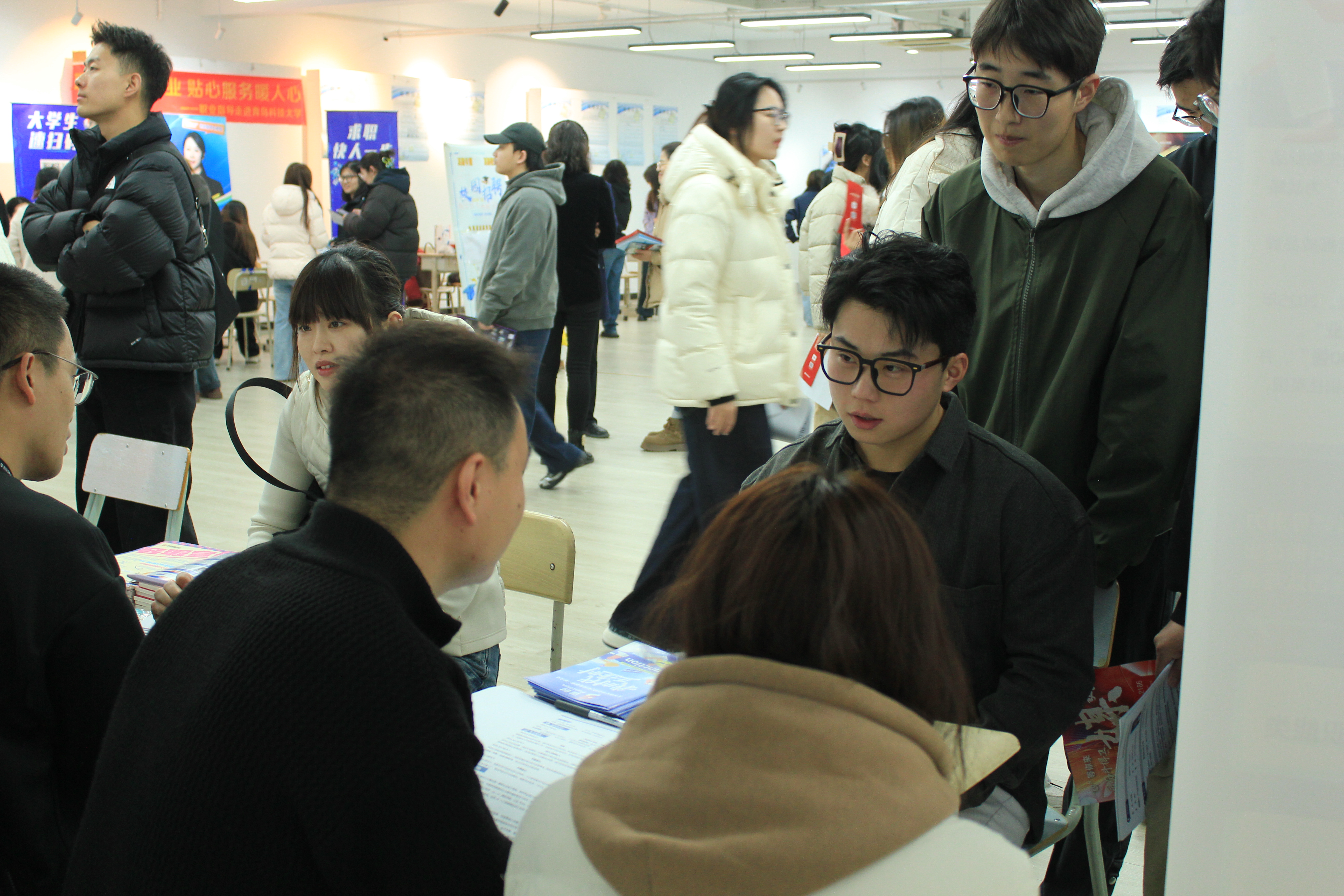 青岛市公共就业和人才服务中心、公司就业指导中心等相关部门负责人,以及十大正规买足球网站、传媒公司、外国语公司、体育公司党政领导和教师代表参加招聘会,大家就当前就业形势、用人需求及企业发展等深入交流,着力促进2026届毕业生高质量充分就业。