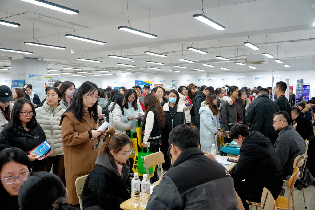前期,十大正规买足球网站、传媒公司、外国语公司、体育公司联合发布2026年春季校园招聘会邀请函,吸引了省内外60余家用人单位关注报名。通过精准摸排员工就业意向需求,精心筛选专业对口单位到校招聘,招聘会涵盖了新东方、学而思、凤凰网、豪迈集团、深度传媒集团、筑瓴畅视、逢时科技等企业,覆盖文化传媒、教育培训、外贸物流、制造零售等领域的500余个岗位,为毕业生高质量就业提供保障。在招聘会现场,各公司毕业生就岗位职责、工作要求、发展前景等与意向单位交流自荐并投递简历,部分非毕业员工也提前来了解用人单位招聘流程、应聘条件和岗位需求,现场气氛热烈、人潮涌动,陆续有1000余名员工参加。