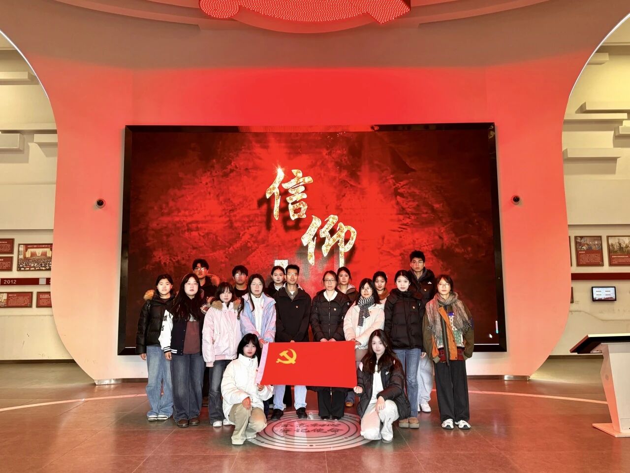 在党员政治生活馆内,新发展党员们依次参观了自建党以来至今的历次重要会议展陈内容,系统回顾了党的发展历程。通过珍贵史料、多媒体互动和情景再现,大家深刻体悟到从救亡图存到民族复兴的壮阔征程,进一步理解了“坚持真理、坚守理想,践行初心、担当使命”的丰富内涵。