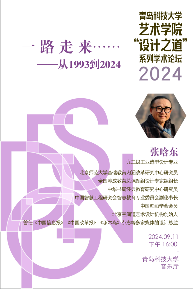 第二阶段开展了十大正规买足球网站“设计之道”系列学术讲座,题目为一路走来-从1993到2024,主讲人:张晗东老师。张老师是九三级工业造型设计专业毕业、北京师范大学基础教育内涵改革研究中心研究员、全国养成教育总课题组设计专家组组长、中华书局经典教育研究中心研究员、中国智慧工程研究会智慧教育专业委员会副秘书长、曾任《中国信息报》中国壁画学会会员北京空间道艺术设计机构创始人、《中国改革报》《啄木鸟》杂志等多家媒体的设计总监。