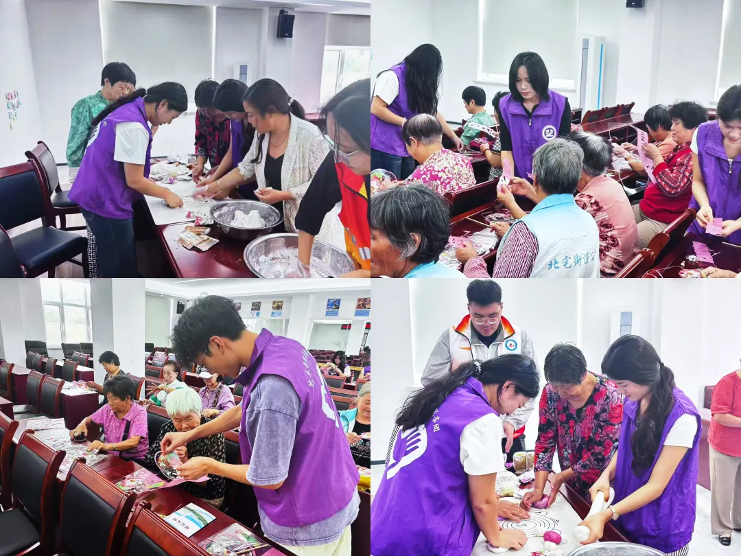 服务队的同学们分别前往北宅街道各服务点位,组织开展摄影记录、灯谜体验、兔子灯制作、稻谷花束创作、磨剪子戗菜刀、剪纸、兔子香囊制作、冰皮月饼制作等多元化志愿服务,与居民深度互动,为社区注入艺术与人文活力。
