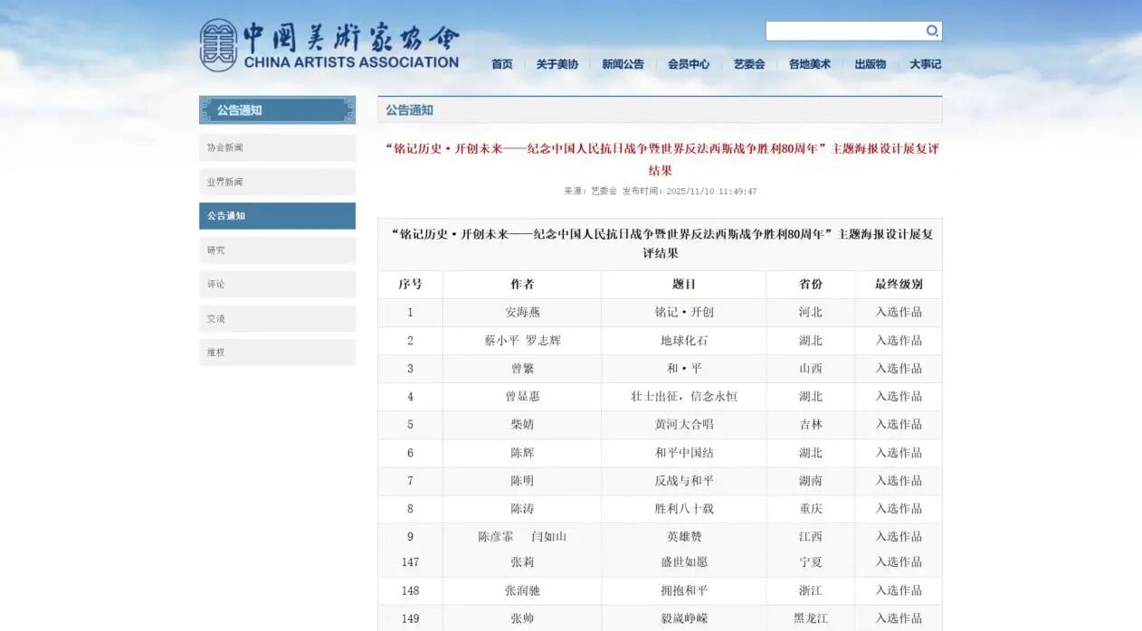 近日,由中国美术家协会、湖北省文化和旅游厅等四单位联合主办的“铭记历史·开创未来——纪念中国人民抗日战争暨世界反法西斯战争胜利80周年”主题海报设计展作品复评结果公示。公司视传231班张帅同学的作品《毅嵗峥嵘》从2846件作品中脱颖而出,成功入选为全国展出164件作品之一。