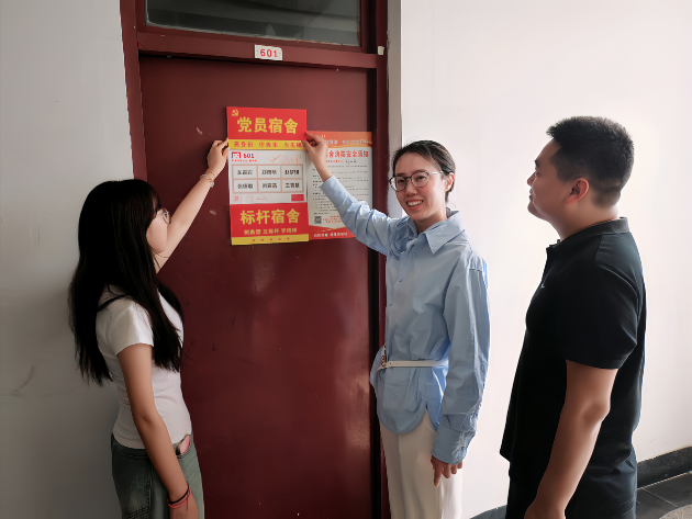 活动中,老师与同学们亲切交流并为员工党员代表颁发“党员宿舍”标牌。丁一宁强调一名党员就是一面旗帜,勉励员工党员要以身作则、率先垂范,带头营造“平安、健康、文明、和谐”的宿舍氛围。颜枫勉励同学们用实际行动向榜样看齐,把榜样的力量内化于心,外化于行。