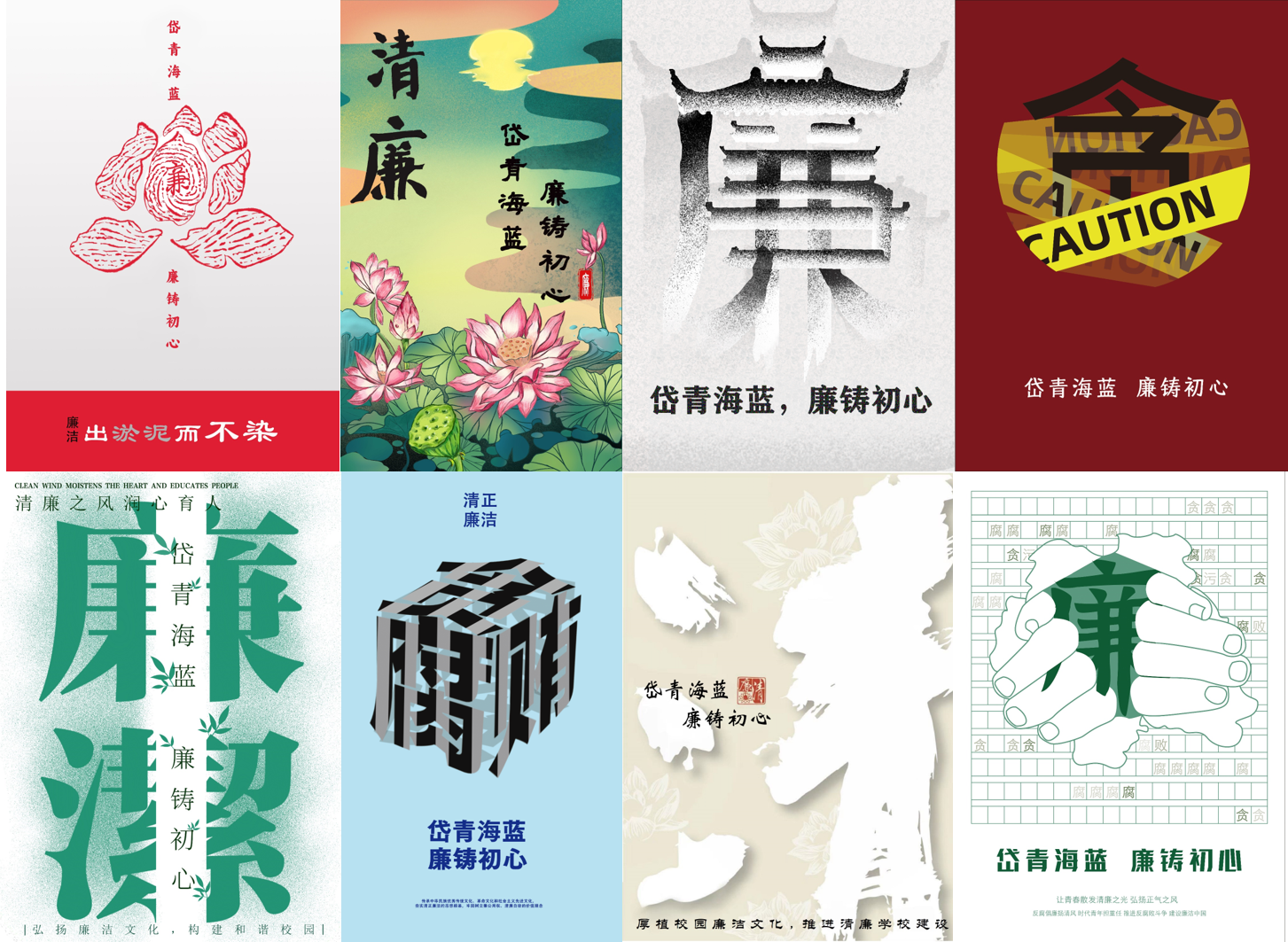 本次书画展以“岱青海蓝,廉铸初心”为主题,共展出师生精心创作的招贴作品五十余幅。这些招贴作品或借物喻廉,或直白表意,以多元视角和创意手法,诠释廉政文化内涵。有的以莲为媒,展现“清廉非清苦,而是一种清雅之美”的意境;有的以天平为喻,象征权力与廉洁的平衡,传递“公正如衡,自律如砝”的深刻寓意。参观过程中,校领导一行驻足欣赏每一幅作品,认真听取创作者对作品立意和艺术表现的讲解,领悟其中蕴含的廉政思想内涵。