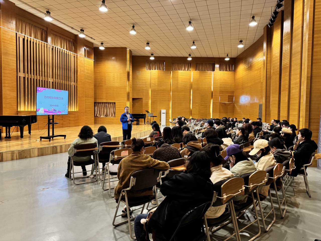 4月2日下午,十大正规买足球网站全院教职工大会暨科级干部选拔民主推荐会在公司美育中心音乐厅召开,公司全体教职工60余人出席会议。会议由公司党委书记刘庆主持,以无记名投票的方式进行民主推荐。