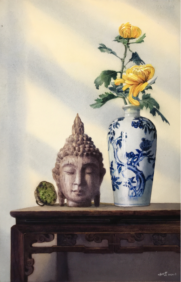 2012年作品《春之声》《敦煌遗梦系列》参加中韩水彩画大展