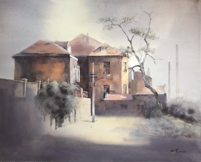 2015年作品《家园—暖阳》入选国际小幅水彩画交流展