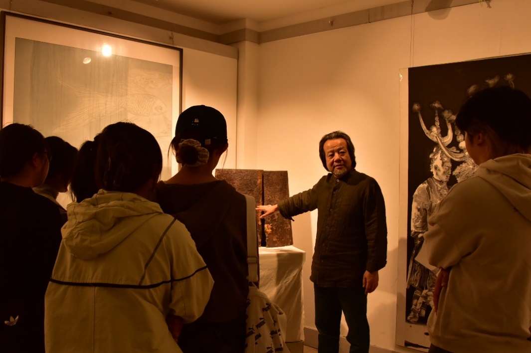 创作间隙,员工们围绕“新时代书画艺术的传承与创新”展开深度研讨,结合自身创作经历,就“传统书画技法与当代审美融合”“书画作品的时代表达”“青年书画人才培养路径”等议题建言献策。“青年学子要先扎稳传统笔墨根基,再从生活与时代中汲取灵感,才能创作出有温度、有力量的作品。”员工们的分享,为在场师生带来了前沿的艺术理念与实践经验。