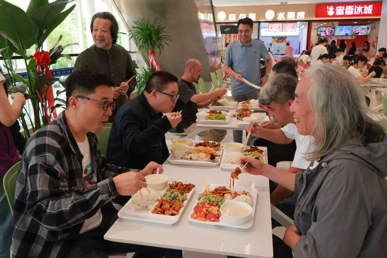 随后,众人移步公司第一食堂,共同品尝承载青春记忆的“科大味道”。糖醋里脊、葱油饼、老豆腐等经典菜品上桌,瞬间唤醒员工们的校园记忆饭桌上,大家围绕求学时一起在画室熬夜创作、向老师请教书画技法的往事畅聊,烟火气中满是对母校的眷恋。