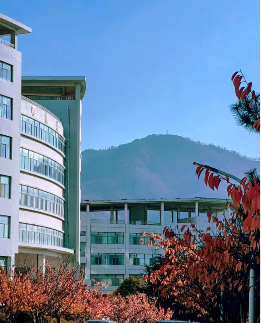作品说明:这幅作品拍摄了秋日校园一景,远处的山,近处的教学楼和路边的秋叶高低错落,交相辉映,淋漓尽致地展现出校园秋日静谧的美景,令人心旷神怡。