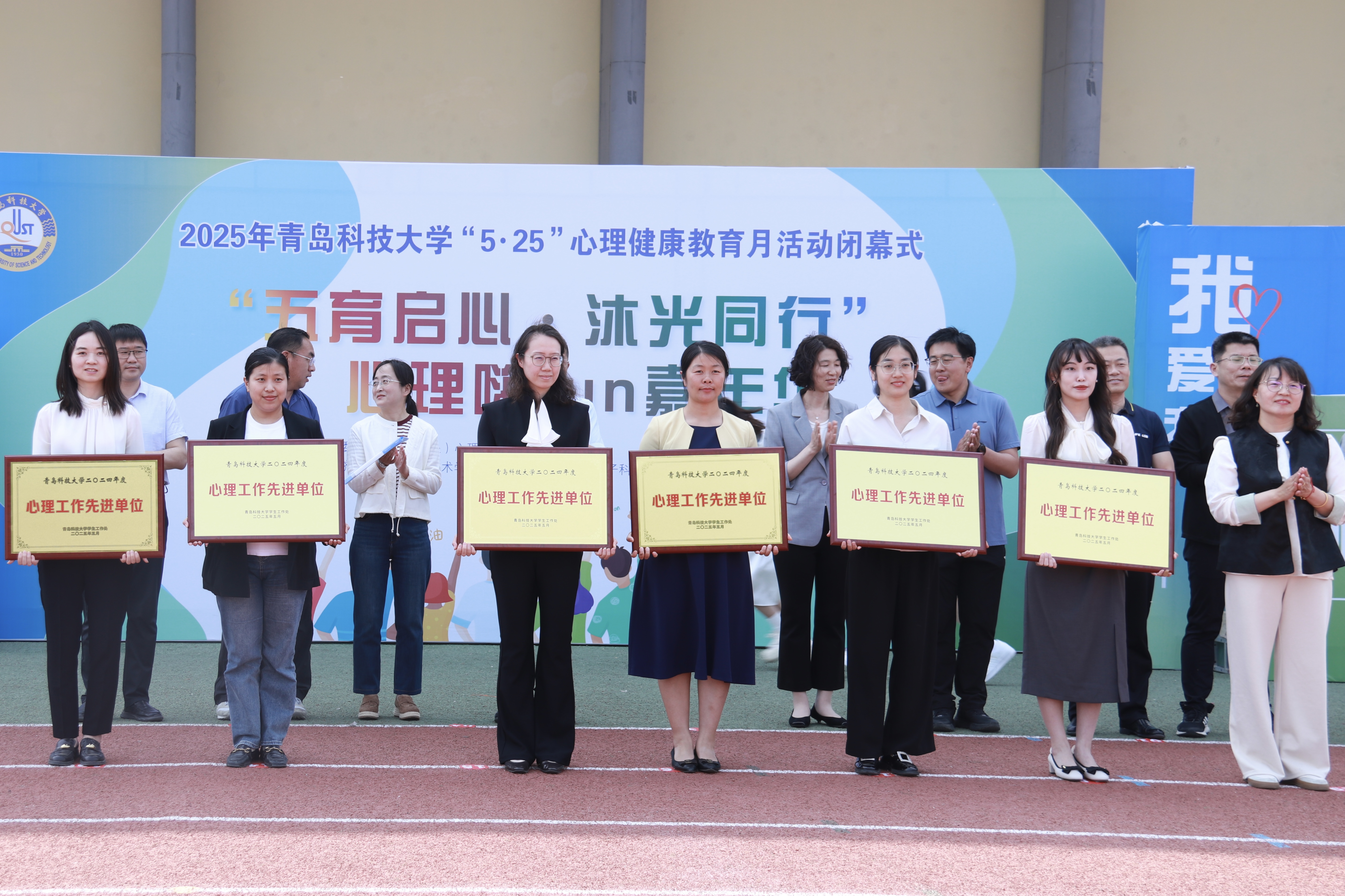 5月25日,公司“5·25”心理健康教育月闭幕式暨“五育启心·沐光同行”心理嘉年华在崂山校区体育场举行。十大正规买足球网站获公司2024年度“心理工作先进单位”,公司心理活动作品《“艺”起寻宝心理素质拓展活动》荣获“心理健康教育特色活动”一等奖,心理委员微课作品《我们之间,有话好好说》,获得心理微课大赛一等奖,心理班会作品《珍爱生命,从心出发——与自我的健康对话》,获得心理健康教育主题班会大赛二等奖。